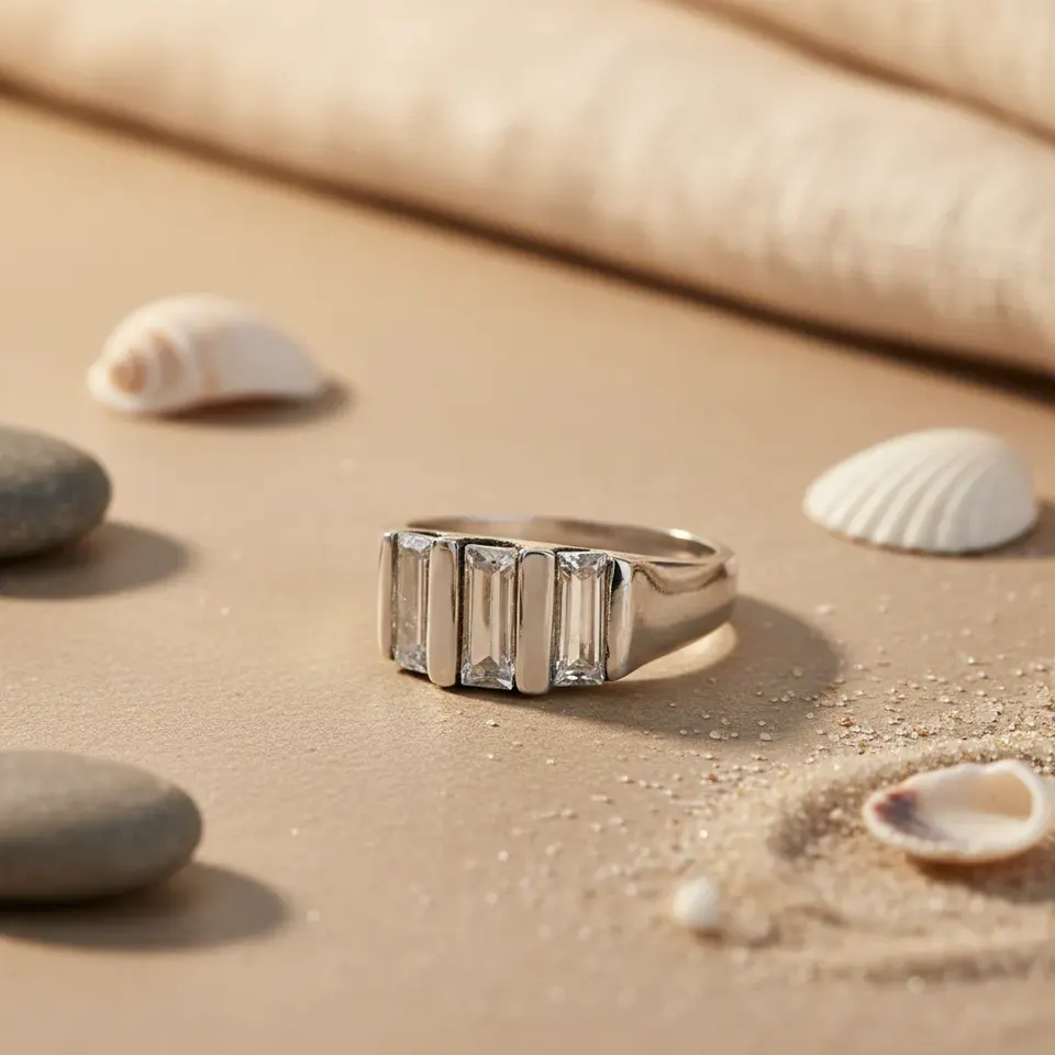 แหวนเงินแฟชั่นผู้หญิงสไตล์โรแมนติก ประดับด้วยพลอย CZ สีขาว ดีไซน์รูปหัวใจเรขาคณิตทันสมัย ฝังบนเปลือกทองแดงด้วยเทคโนโลยีกรงเล็บ