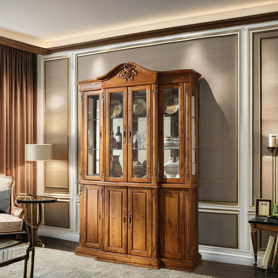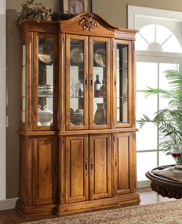 เฟอร์นิเจอร์บ้านไม้สักแกะสลักสไตล์ยุโรป งานแฮนด์เมดสุดหรู ทนทาน เป็นมิตรต่อสิ่งแวดล้อม พร้อมชั้นวางของโบราณ 8 บานประตู ลายองุ่น