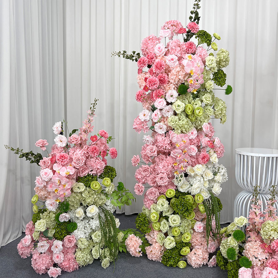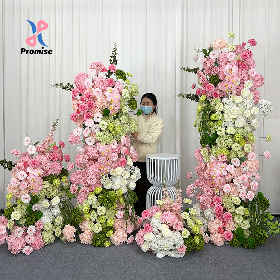 ซุ้มดอกไม้ประดิษฐ์ที่โรแมนติกและสดชื่น ฉากหลังตกแต่งงานวันเกิดและงานแต่งงาน