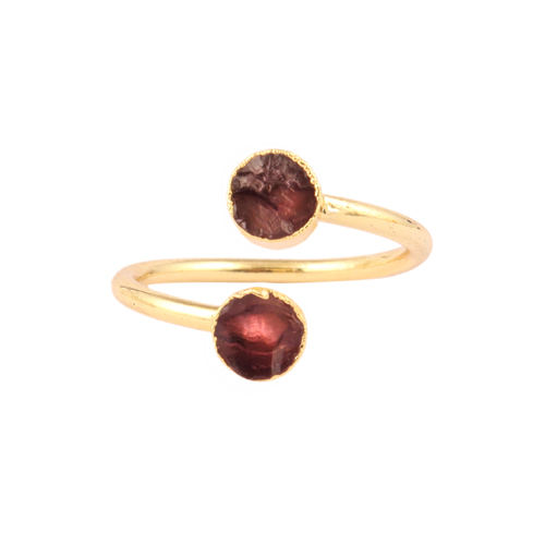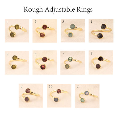 แหวนหินทัวร์มาลีนแบบหยาบธรรมชาติโรแมนติกแหวนขอบชุบด้วยไฟฟ้าทองเหลืองทองแหวนเดี่ยวปรับขนาดได้