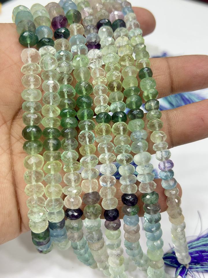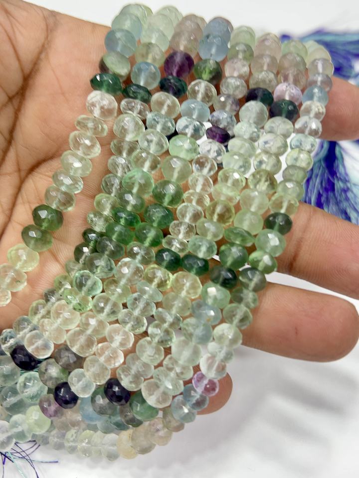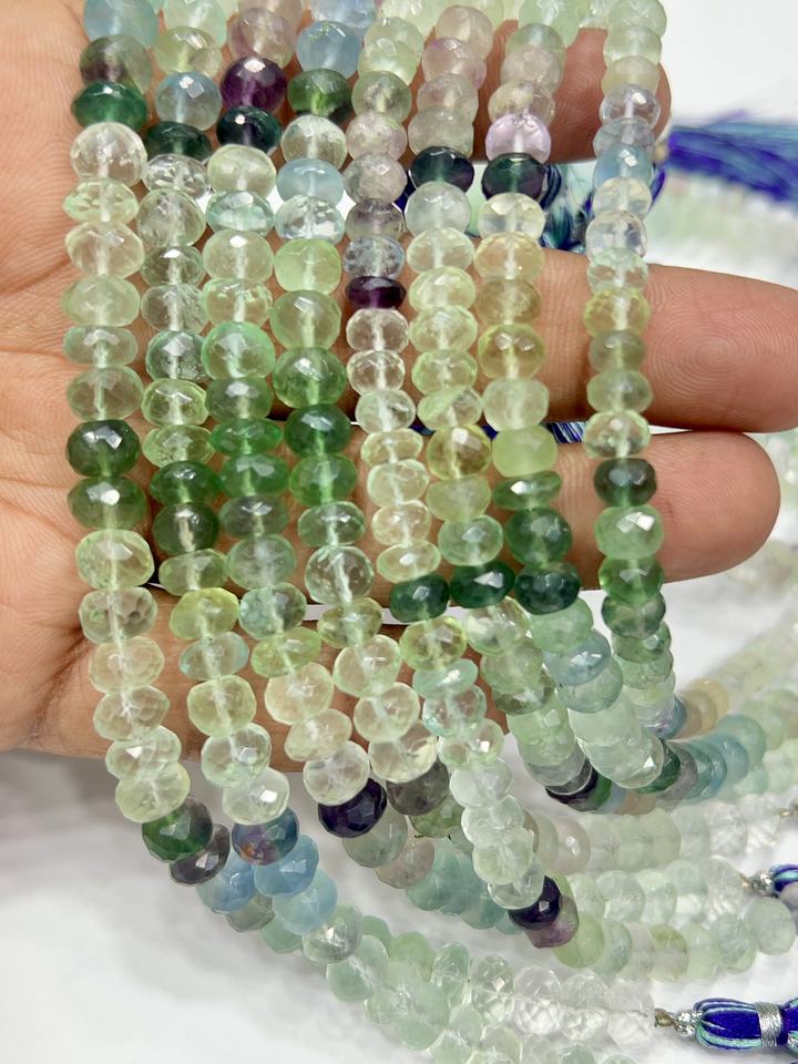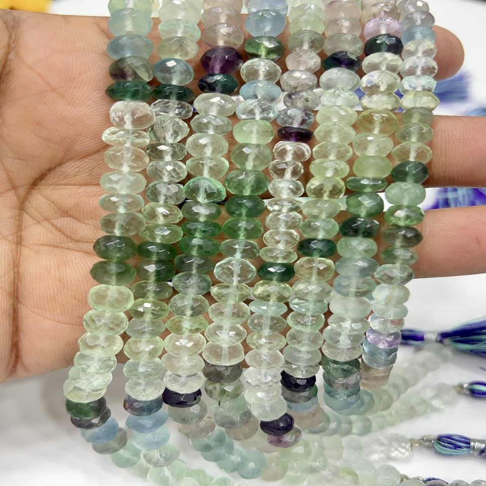 ลูกปัดพลอยรอนเดลล์ เกรด AAA ฟลูออไรต์สีเขียวธรรมชาติ ลูกปัดรอนเดลล์เจียระไน ขนาด 8 มม. ความยาว 8 นิ้ว