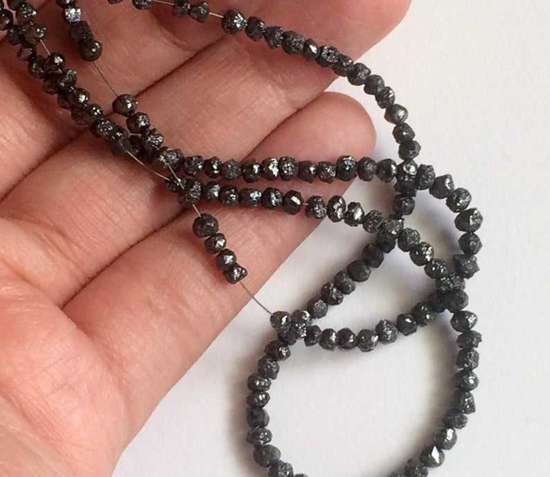 ลูกปัดหยาบขัดเพชรสีดำเจียระไนแบบไม่ได้เจียระไน