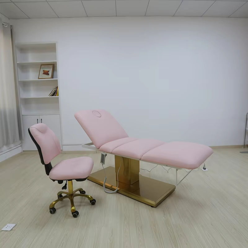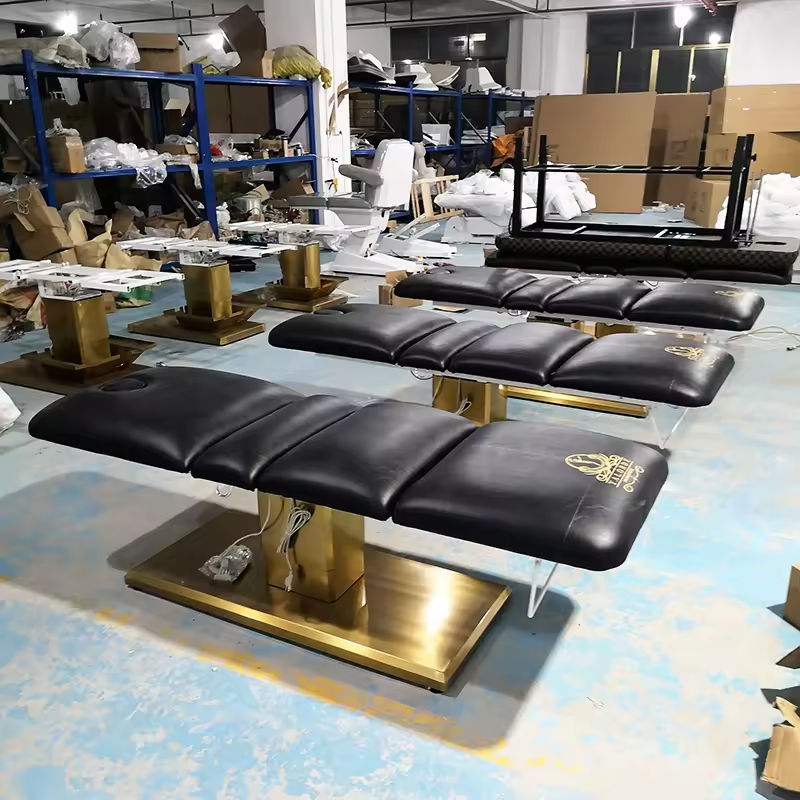 Rongjia Modern Luxury Beauty Salon Furniture Golden Base Electrical 3 Motor Spa Facial Massage Bed
