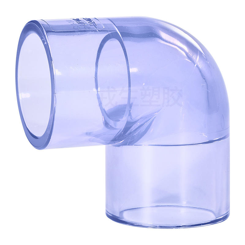 ข้อต่อท่อพีวีซีแบบใส 90 องศา ยี่ห้อ Rongsheng สำหรับใช้กับน้ำและสารเคมี ข้อต่อพลาสติกแข็งแบบเสียบมุมฉาก