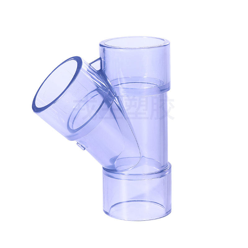 ข้อต่อท่อพีวีซีแบบใส Rongsheng รุ่น T-Connect แบบเอียง 45 องศา ชนิดเสียบภายใน รูปตัว Y สำหรับระบายน้ำ มาตรฐาน ANSI