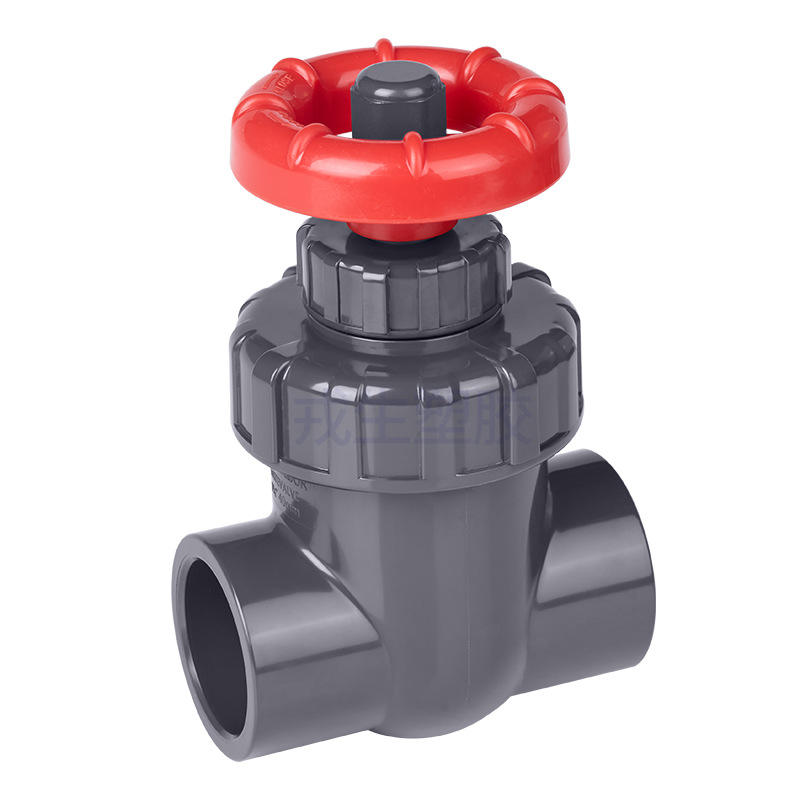 วาล์วประตูน้ำ UPVC ยี่ห้อ Rongsheng ขนาด 2 นิ้ว พร้อมมือหมุนสีแดง สำหรับตู้ปลาและงานประปา