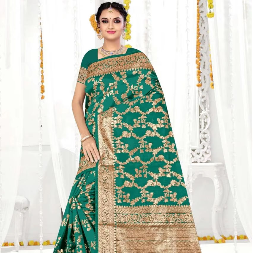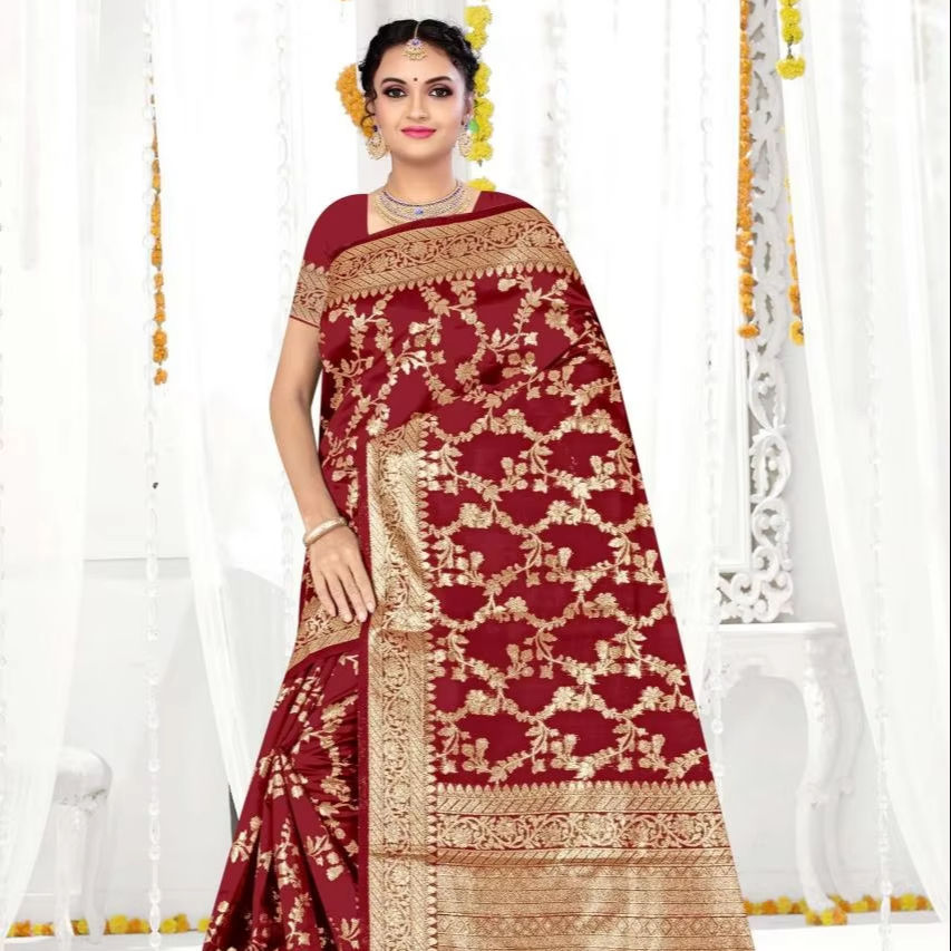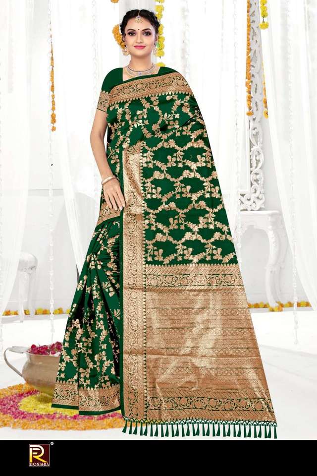 เสื้อส่าหรีแฟชั่นสำหรับผู้หญิงยี่ห้อ Ronisha Fashion Banarasi Designer จากผู้ผลิตในอินเดีย