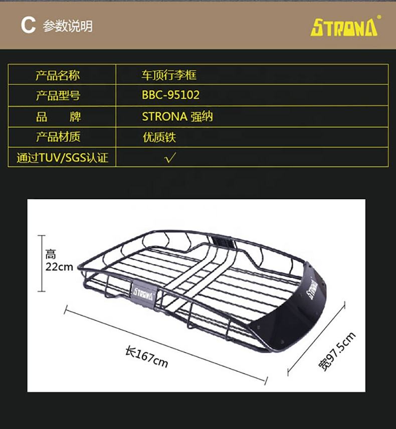 ตะกร้าสัมภาระบนหลังคา Strona สำหรับอุปกรณ์กลางแจ้ง เหล็กกล้าอ่อน รับน้ำหนักได้ 75 กก. รุ่น BBC-95100