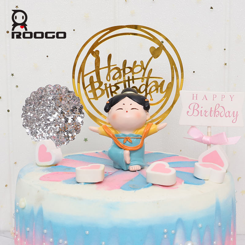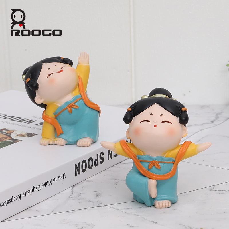 Roogo Tang Dynasty รูปสุภาพสตรีเรซิ่นตกแต่งบ้านเครื่องประดับรูปแกะสลักขนาดเล็กน่ารัก