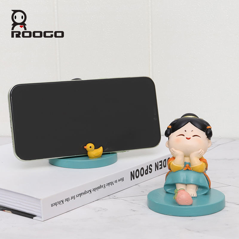 Roogo งานฝีมือเรซินจากยุโรปผู้หญิงน่ารักของราชวงศ์ถังมือถือที่วางโทรศัพท์มือถือของตกแต่งบ้าน