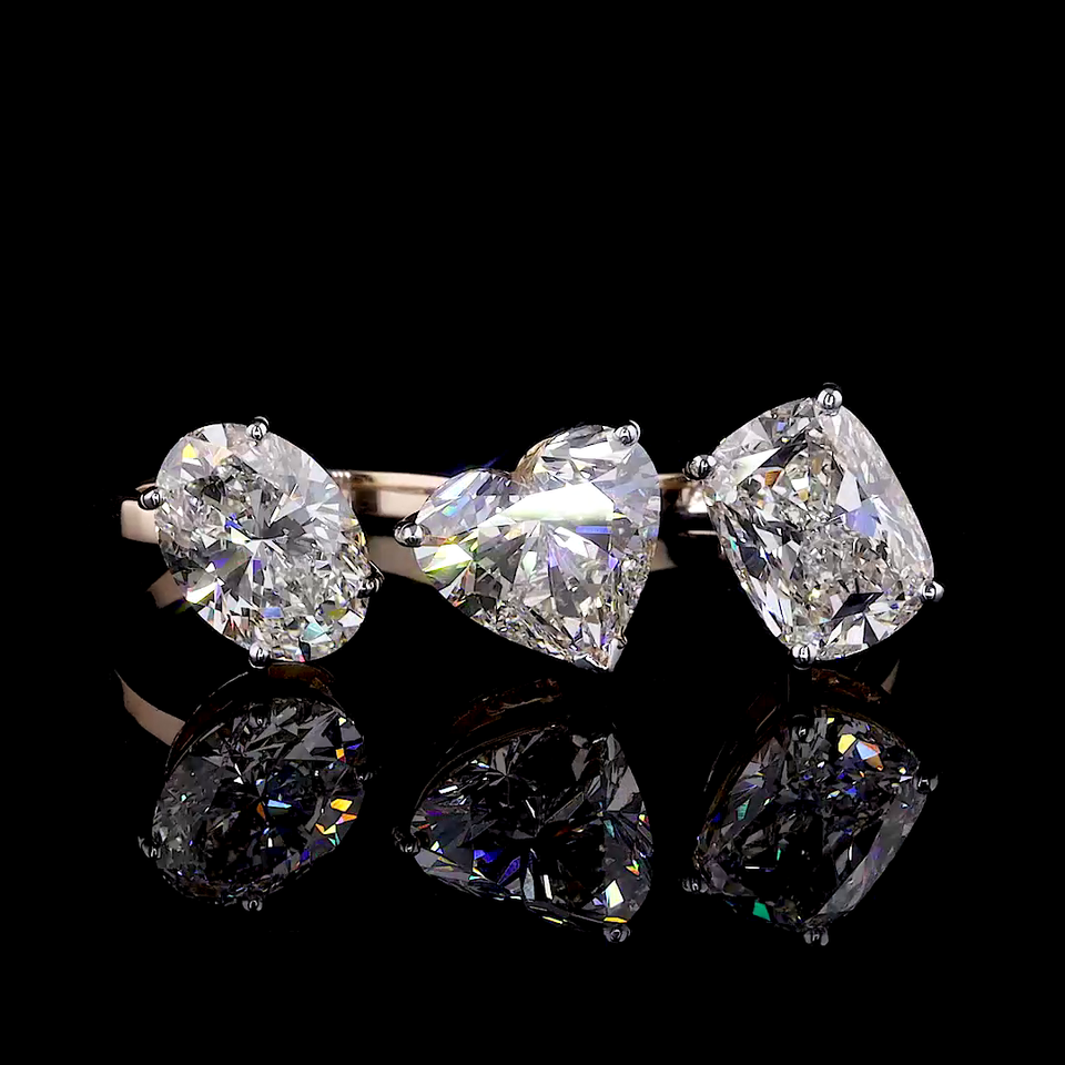 แหวนเพชร3เม็ด-โรสโกลด์14K/18K, เพชรที่ปลูกในห้องปฏิบัติการ, แหวน, หินสามก้อนที่ทันสมัย, ผู้หญิง
