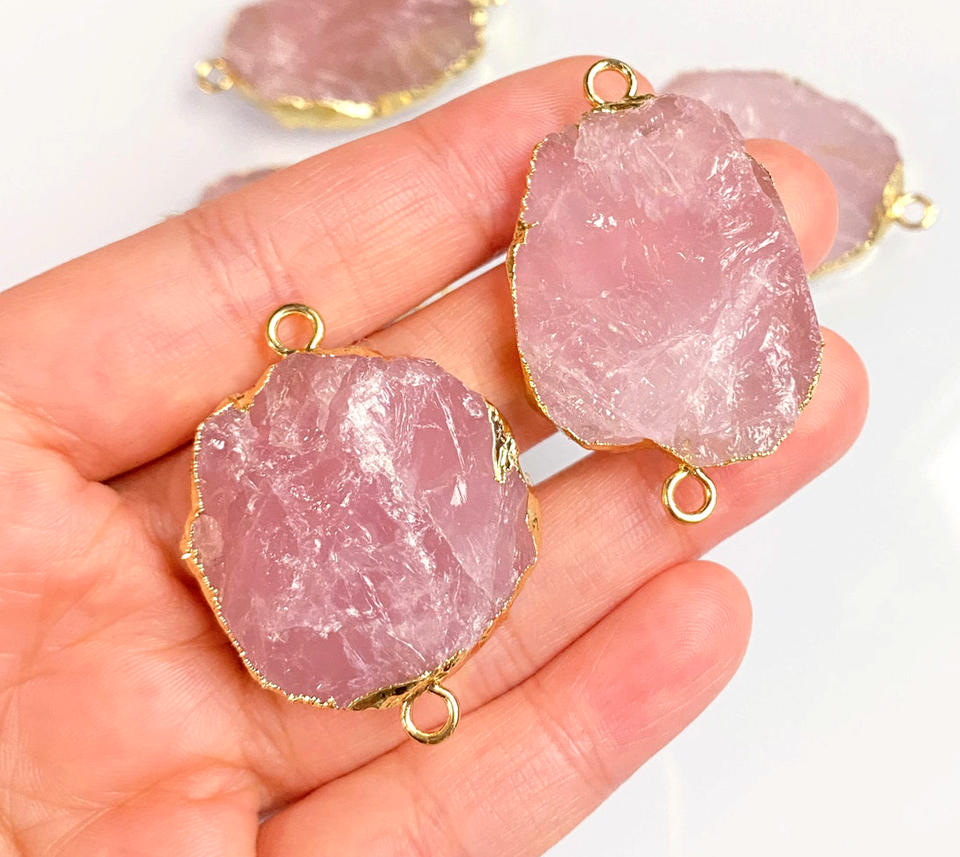 Rose Chalcedony 10-20มม. Univen ทองเหลืองดิบทอง electroplated ตัวเชื่อมต่อห่วงคู่ทองเหลืองชุบเครื่องประดับสำหรับของขวัญวันเกิด