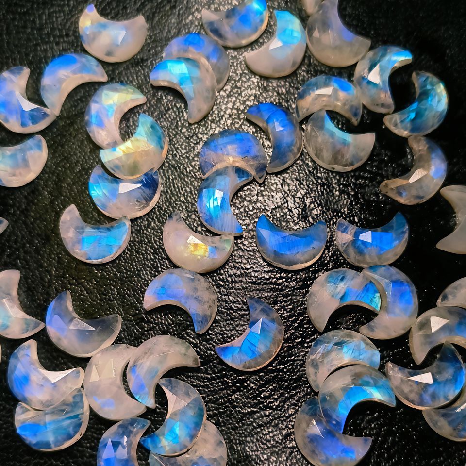 เพชรรูปพระจันทร์เสี้ยวทรงพระจันทร์เสี้ยวเกรด AAA ประดับด้วยพลอยสีฟ้า (แพ็คละ10ชิ้น)