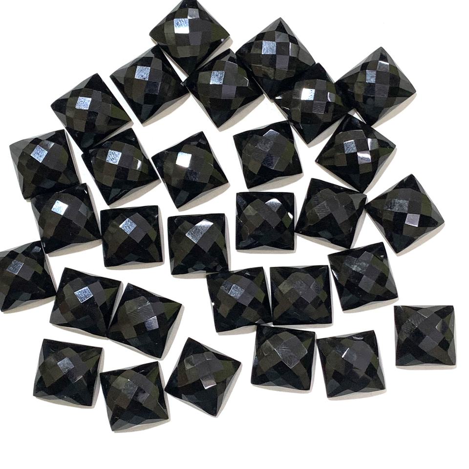 AAAAA Quality 20mm Black Onyx Faceted Loose Gemstone Square Rose Cut Natural IGI Certified Gemstone for Jewelry Making
