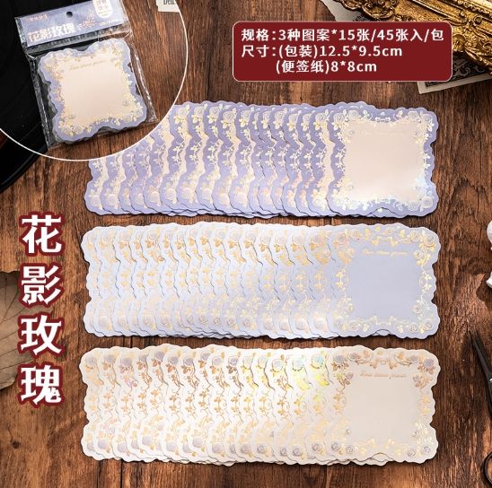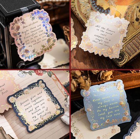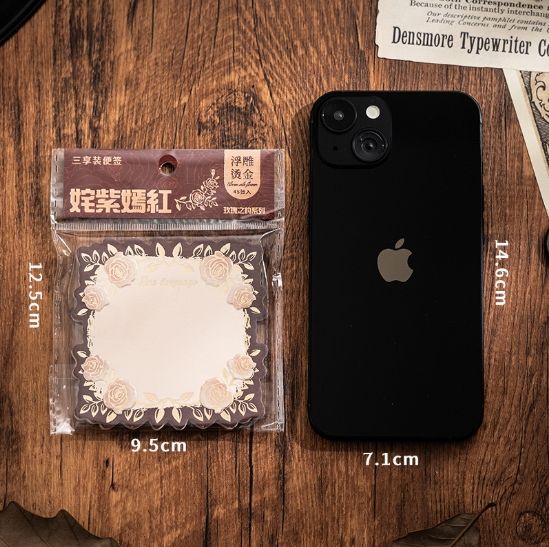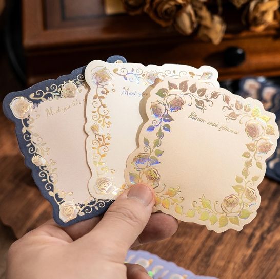 สมุดโน้ตแบบแผ่นหลวม ลายดอกกุหลาบ ปั๊มลายทองสามมิติ พร้อมแผ่นบันทึกข้อความ