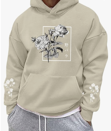 Rose Solid Winter Hoodie for Men Aesthetic Japanese Cool Oversized Trendy Streetwear Pullover Sweatshirt Digital Printing