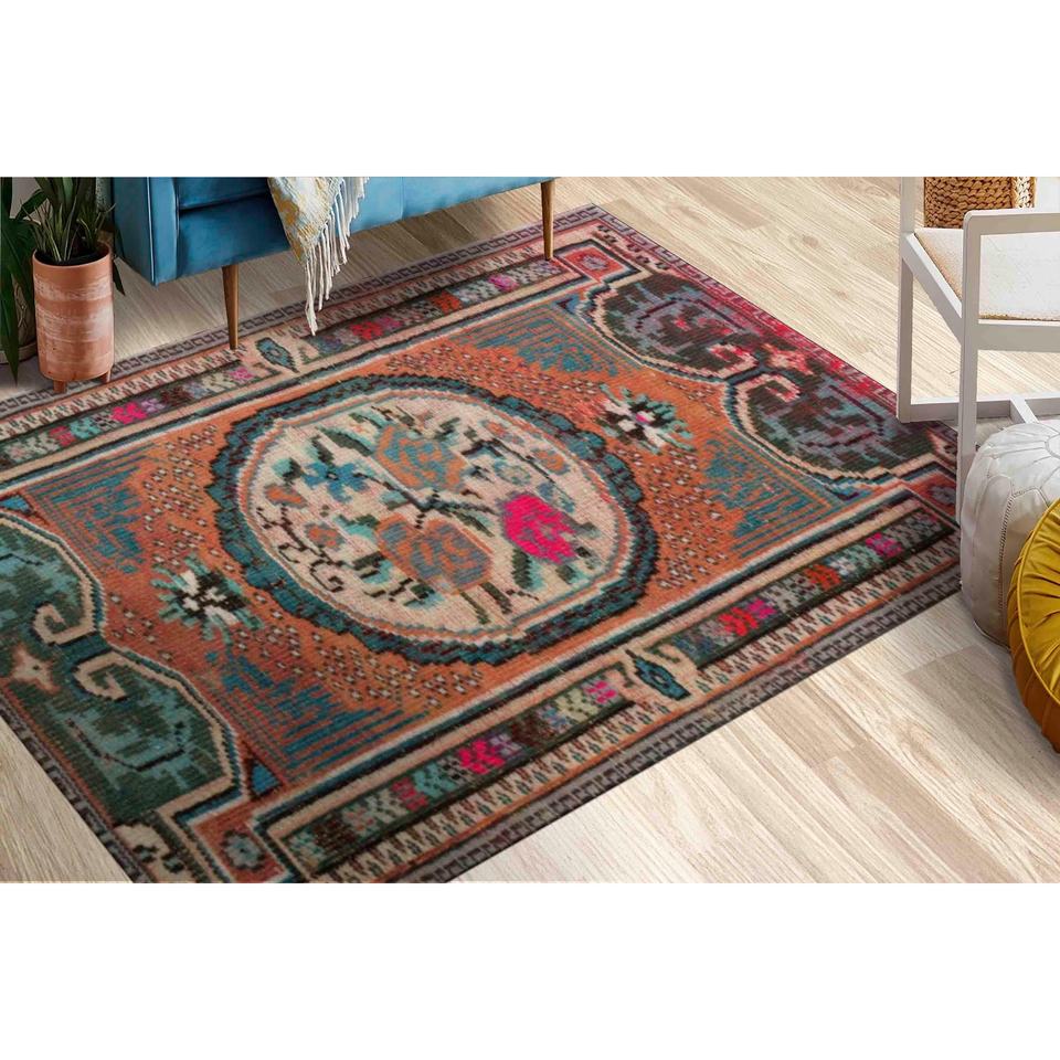 พรมลายดอกกุหลาบ: สไตล์ตุรกีโบราณ พิมพ์ลาย 3 มิติ พรมบางแบบไม่ทอ