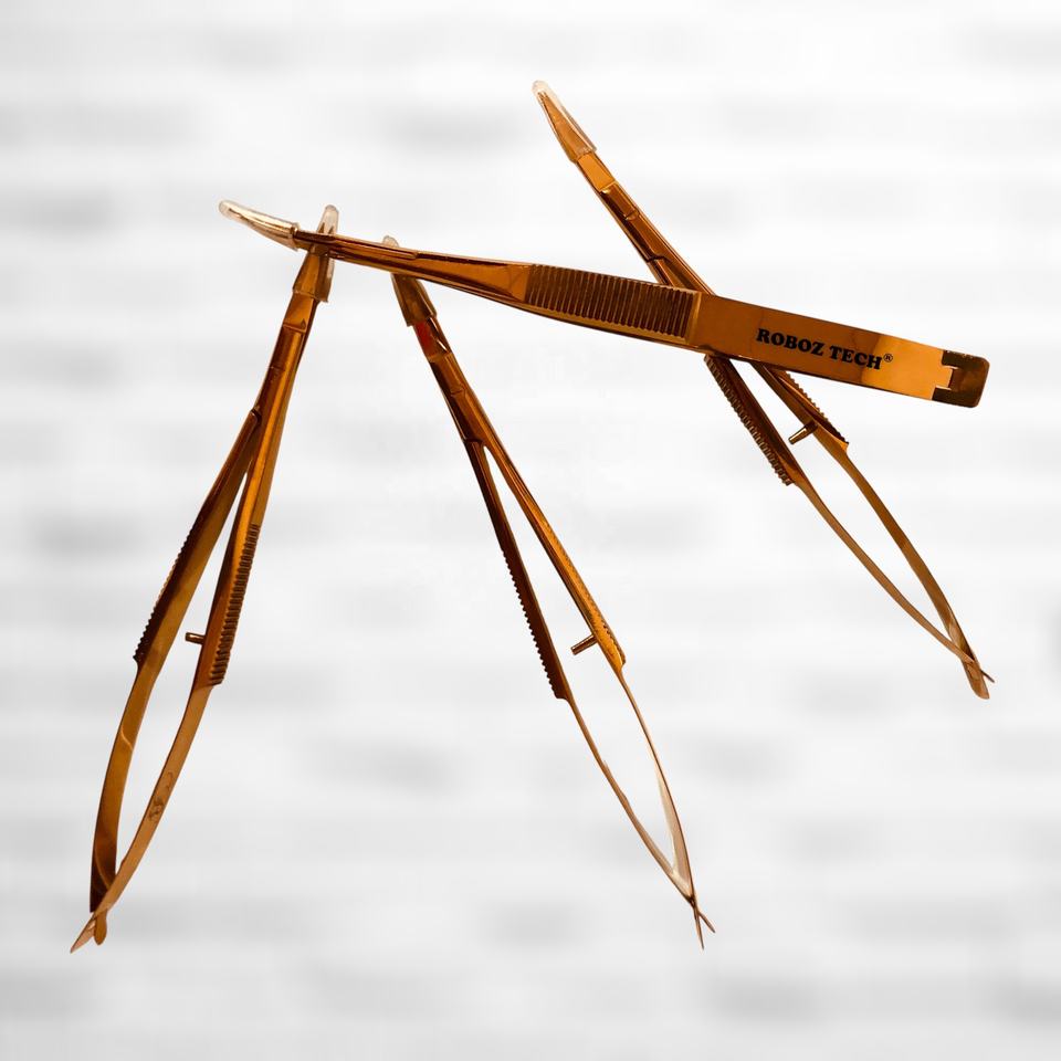 กรรไกรไมโครสีโรสโกลด์ 12 ซม. เครื่องมือผ่าตัดความแม่นยำสูง สำหรับตัดหนังกำพร้า ตา และคิ้ว พร้อมสปริงบีบ