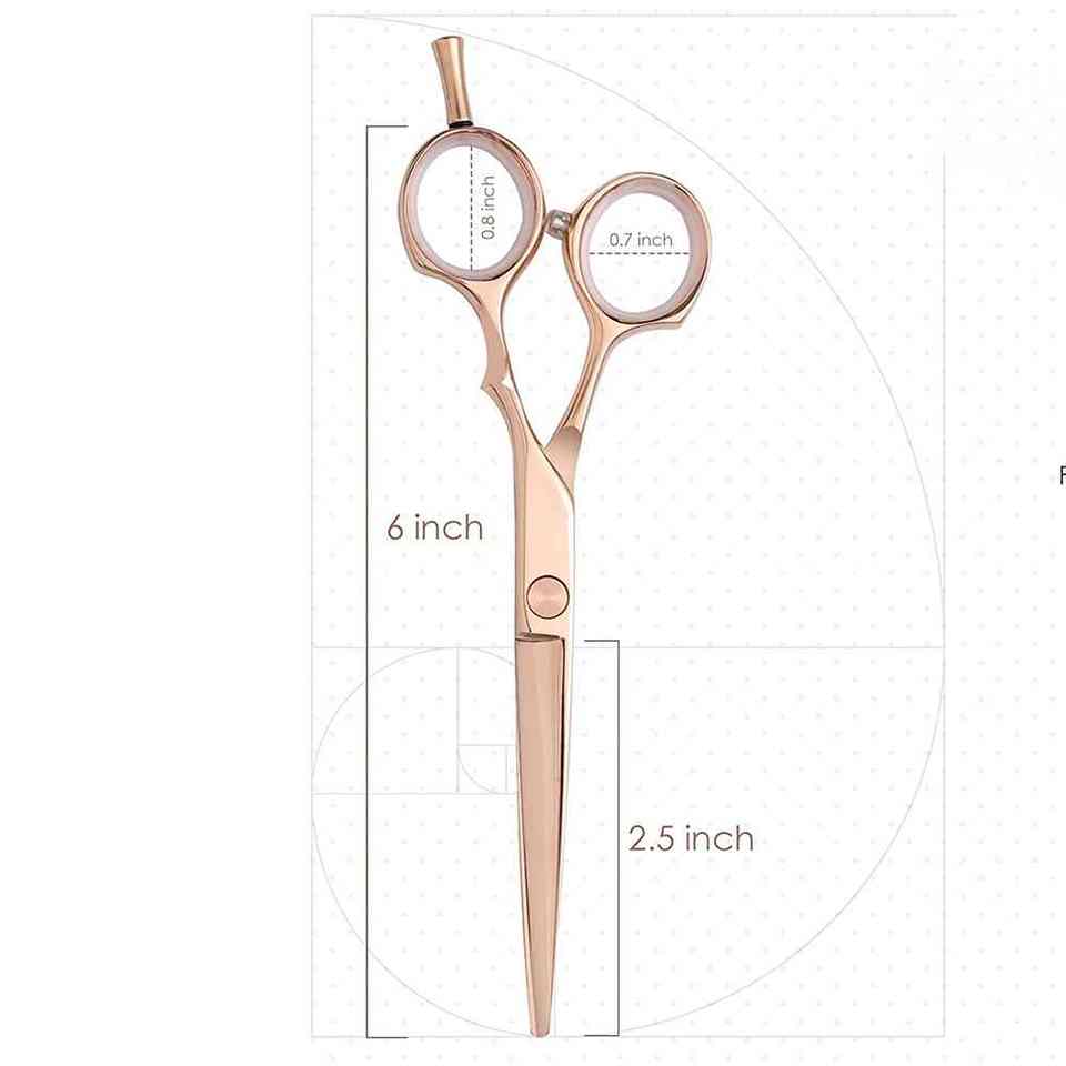 กรรไกรตัดผมสำหรับช่างตัดผมขนาด6.0นิ้วสีโรสโกลด์พร้อมที่วางนิ้วสแตนเลสกระเป๋าหนัง