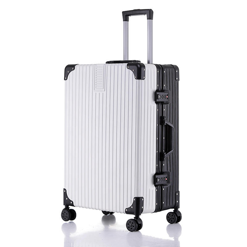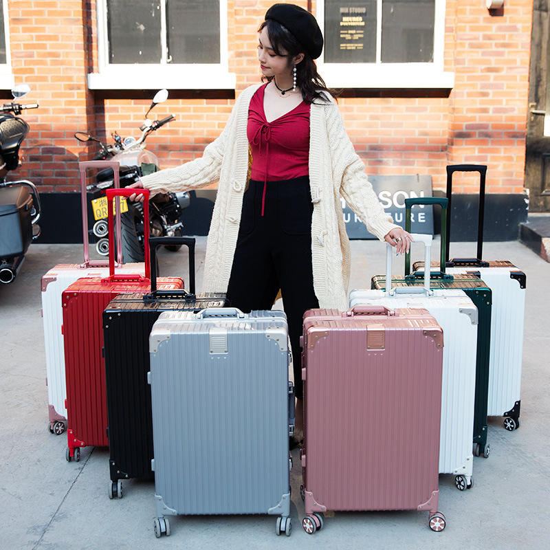กระเป๋าเดินทางโครงอะลูมิเนียมสีโรสโกลด์ 24 นิ้ว ล้อหมุนได้ ทนทาน สำหรับผู้หญิง สีพื้น ล็อคได้
