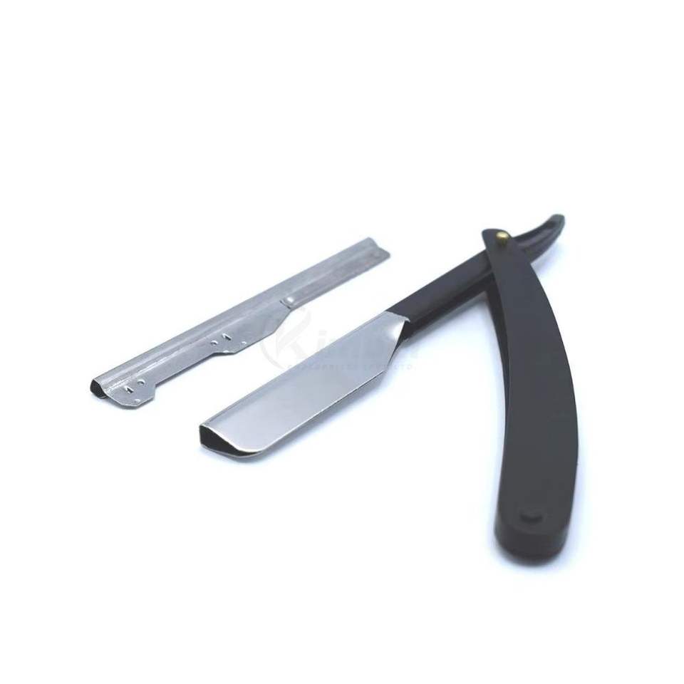 มีดโกนหนวดโรสโกลด์ ใบมีดตรง ด้ามจับสีดำ อุปกรณ์โกนหนวดสำหรับช่างตัดผม ผู้จัดจำหน่ายมืออาชีพ