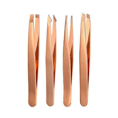 แหนบคิ้วสแตนเลสสีโรสโกลด์พร้อมโลโก้และบรรจุภัณฑ์แบบกำหนดเองเครื่องมือความงามสำหรับขนตาปลอม