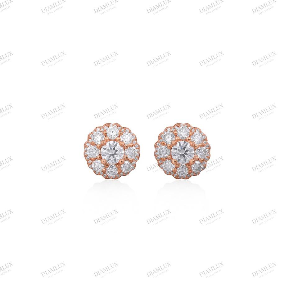 ต่างหูเพชรทรงกลมสีโรสโกลด์ ดีไซน์หรูหราสำหรับผู้หญิง ชุบโรเดียม เหมาะสำหรับงานแต่งงาน งานครบรอบ ราคาสุดคุ้ม