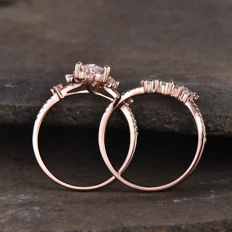 แหวนเงินแท้ 925 ดีไซน์โรสโกลด์ ประดับเพชรทรงลูกแพร์ สไตล์หวานละมุน ชุดแหวนสำหรับงานแต่งงาน งานปาร์ตี้ แฟชั่นฮิปฮอป สำหรับผู้หญิง