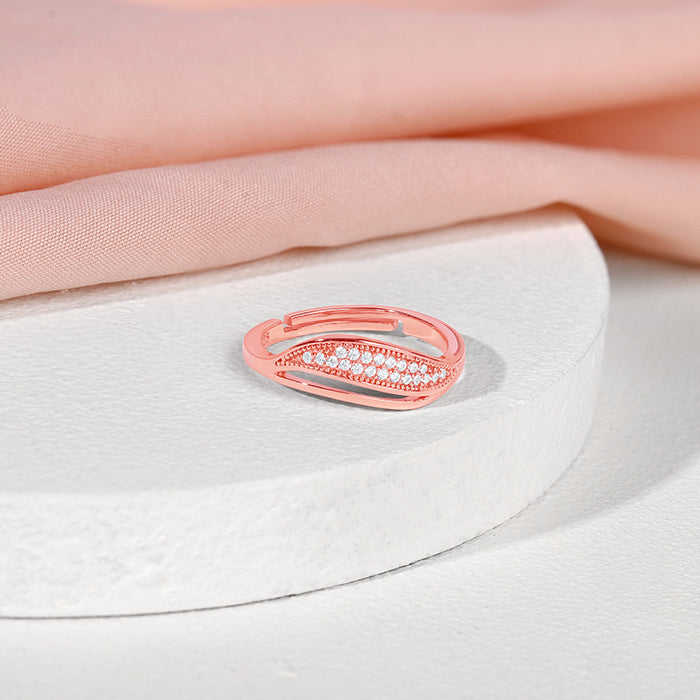 แหวนโรสโกลด์ดีไซน์คลาสสิก ชุบโรเดียมโกลด์ วัสดุหลักทองเหลือง ประดับด้วยเพชรซิร์คอน เหมาะสำหรับงานหมั้น