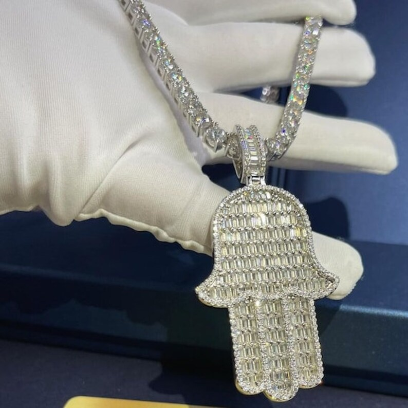 สร้อยคอเพชรสีโรสโกลด์สไตล์คิวบาห่วงโซ่ VVS บาแก็ตเพชรโมอิสซาไนต์สำหรับทำชื่อฮิปฮอปจี้แบบสั่งทำ