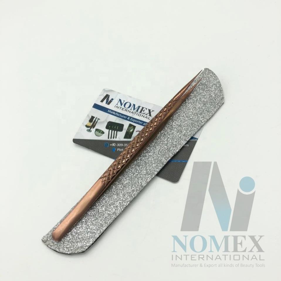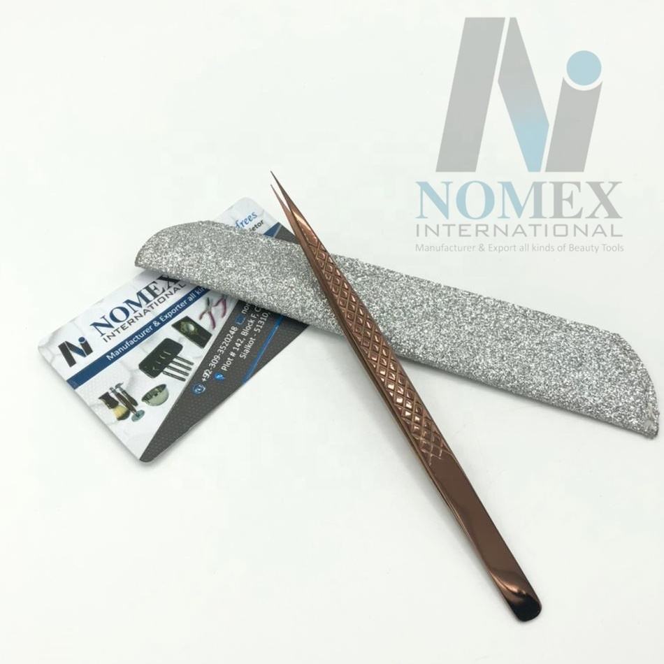 แหนบขนตาแบบด้ามจับเพชรสีโรสโกลด์โลโก้ตามสั่งทำจากสเตนเลสแหนบปลายแหลมแบบยั่งยืน