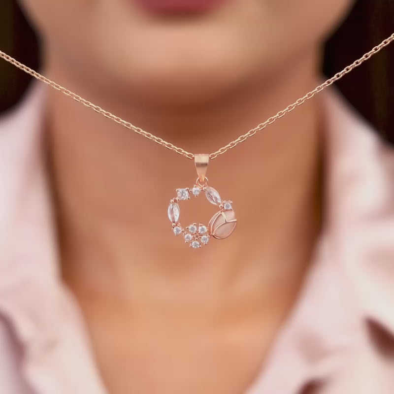 จี้สร้อยคอโรสโกลด์เครื่องประดับแบบคลาสสิกสุดอินเทรนด์ประกอบด้วยเพทายเพชรไข่มุกโรเดียมทองคำขาวฐาน