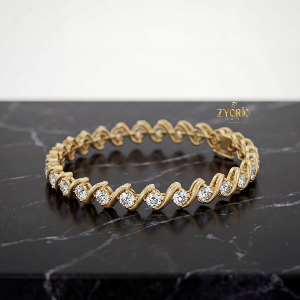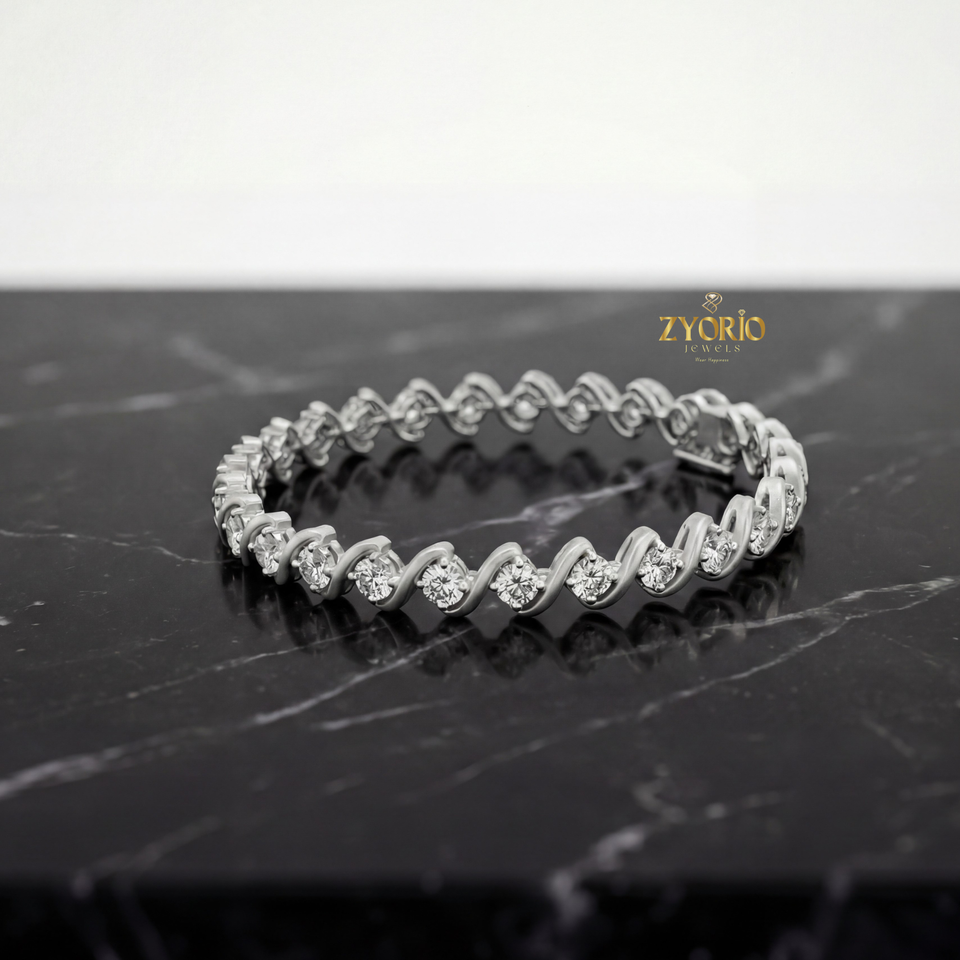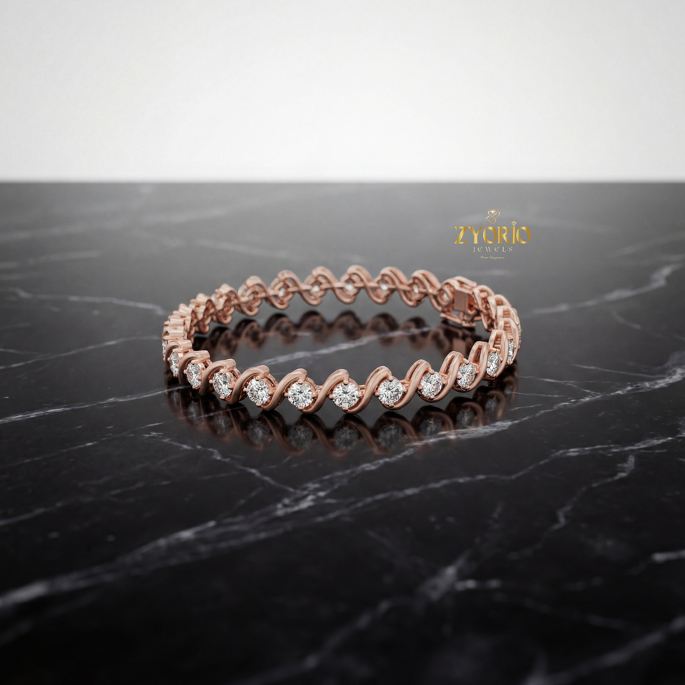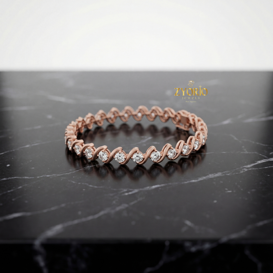กำไลข้อมือเงินแท้ชุบทองคำขาว ประดับเพชรแล็บโกรว์ ดีไซน์คลื่นคลาสสิกหรูหรา สีโรสโกลด์ ประกายระยิบระยับ เหมาะสำหรับวันครบรอบ