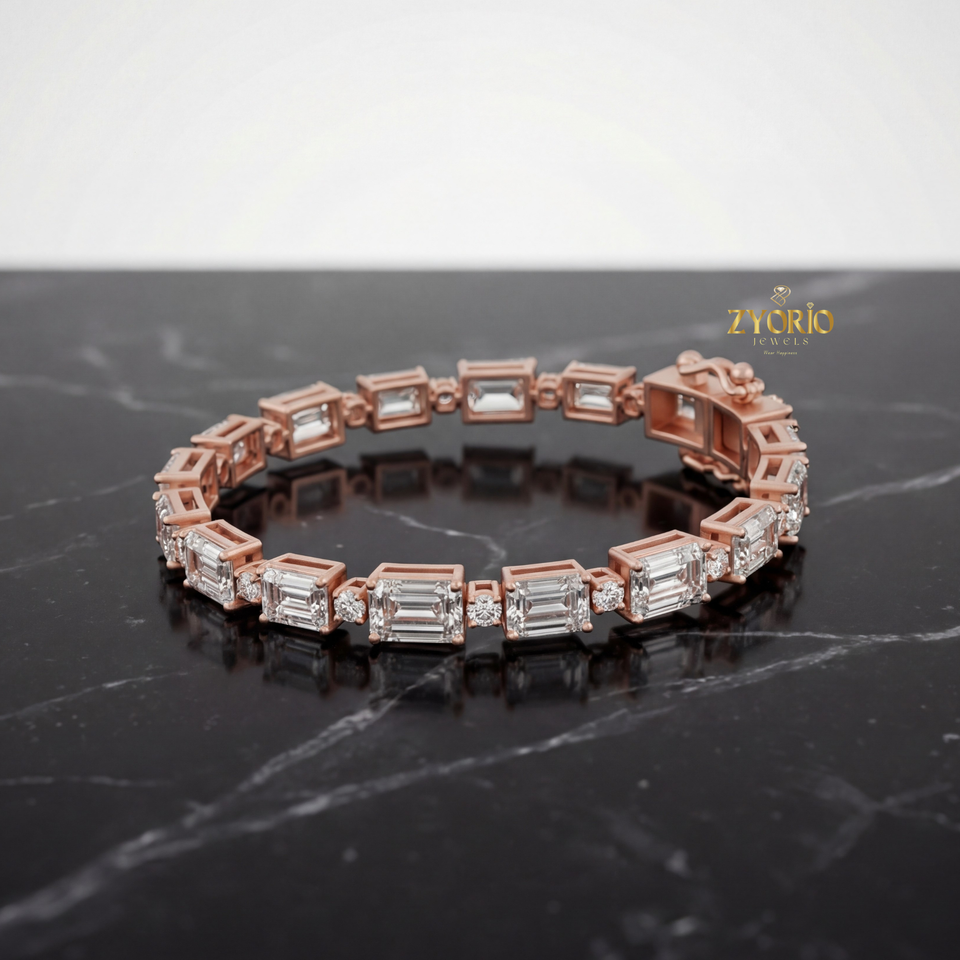 สร้อยข้อมือเพชรทรงเหลี่ยมมรกตสีโรสโกลด์ เพชรเลี้ยงในห้องปฏิบัติการ เงินสเตอร์ลิง คลาสสิก หรูหรา สง่างาม ไม่ล้าสมัย ของขวัญสำหรับผู้หญิงในงานแต่งงานและงานปาร์ตี้