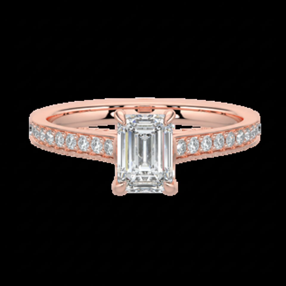 แหวนเพชรเม็ดเดี่ยวสีโรสโกลด์มรกต