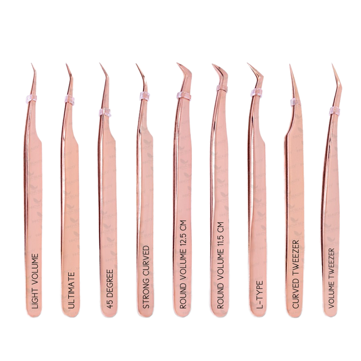 แหนบต่อขนตาสีโรสโกลด์ปลายแหลมทำจากสเตนเลสสตีลติดฉลากส่วนตัวของคุณเป็นมิตรกับสิ่งแวดล้อมสำหรับการต่อขนตา