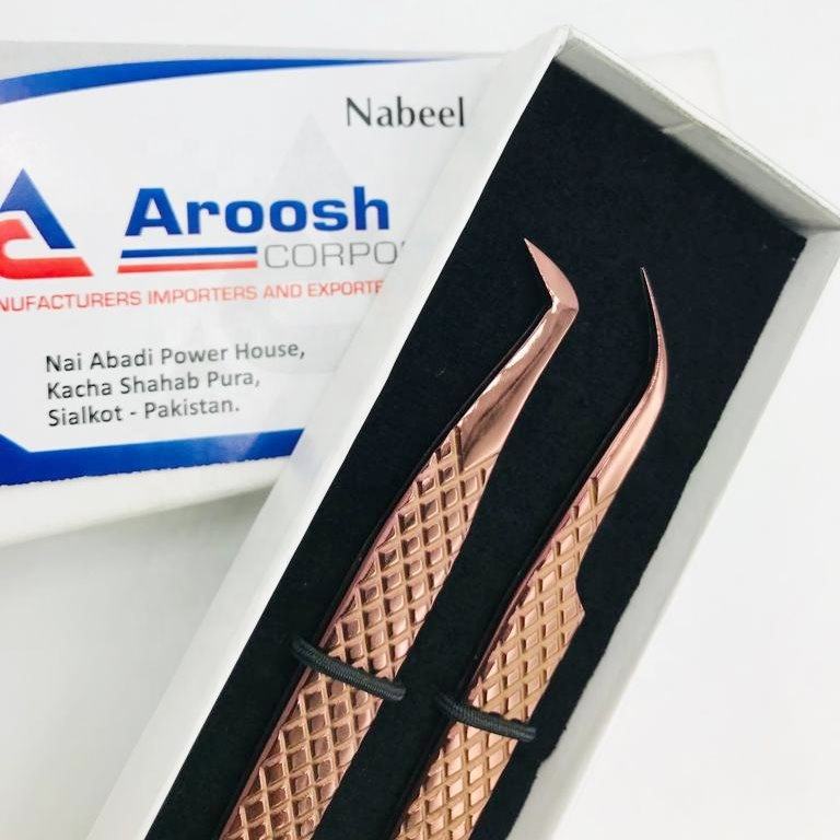 แหนบต่อขนตาปลายงอสีโรสโกลด์ทำจากเส้นใยสแตนเลสคุณภาพสูง