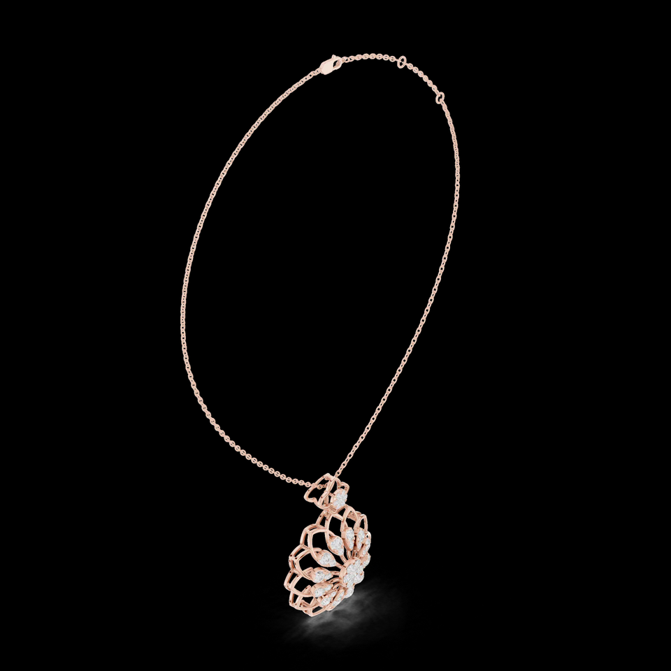 จี้เพชรรูปดอกไม้สีโรสโกลด์สำหรับผู้หญิง พร้อมสร้อยคอชุบทอง 14K 18K ดีไซน์หรูหราเหนือกาลเวลา เหมาะสำหรับงานแต่งงาน