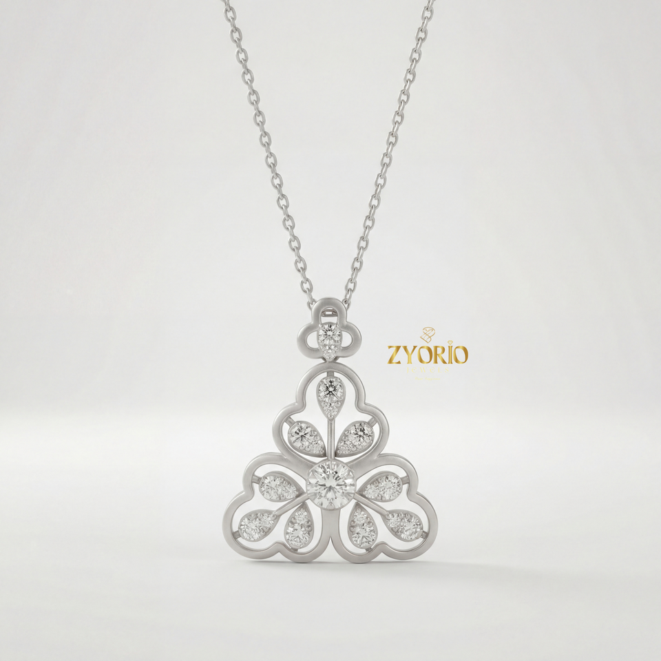 จี้รูปดอกโคลเวอร์ประดับเพชรชุบทองคำสีโรสโกลด์ พร้อมสร้อยเชื่อมแบบโซ่ ดีไซน์หรูหราสง่างาม เหมาะสำหรับเป็นของขวัญงานหมั้น งานแต่งงาน หรืองานเลี้ยง