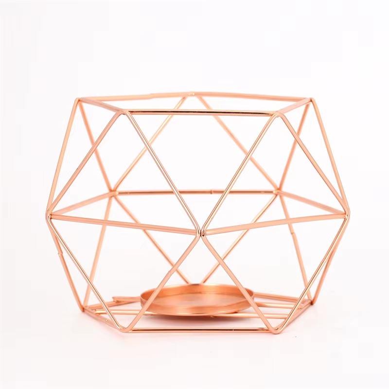 เชิงเทียนโลหะทรงเรขาคณิตสีโรสโกลด์ ของตกแต่งโต๊ะสไตล์โมเดิร์น เหมาะสำหรับบ้าน โรงแรม ร้านอาหาร และการตกแต่งในงานเทศกาล
