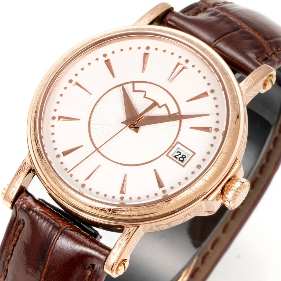 นาฬิกาข้อมือหรูหราสั่งทำพิเศษสีโรสโกลด์ หน้าปัดสีขาว กระจกแซฟไฟร์ พร้อมฟังก์ชั่นปฏิทิน เหมาะสำหรับนักธุรกิจ
