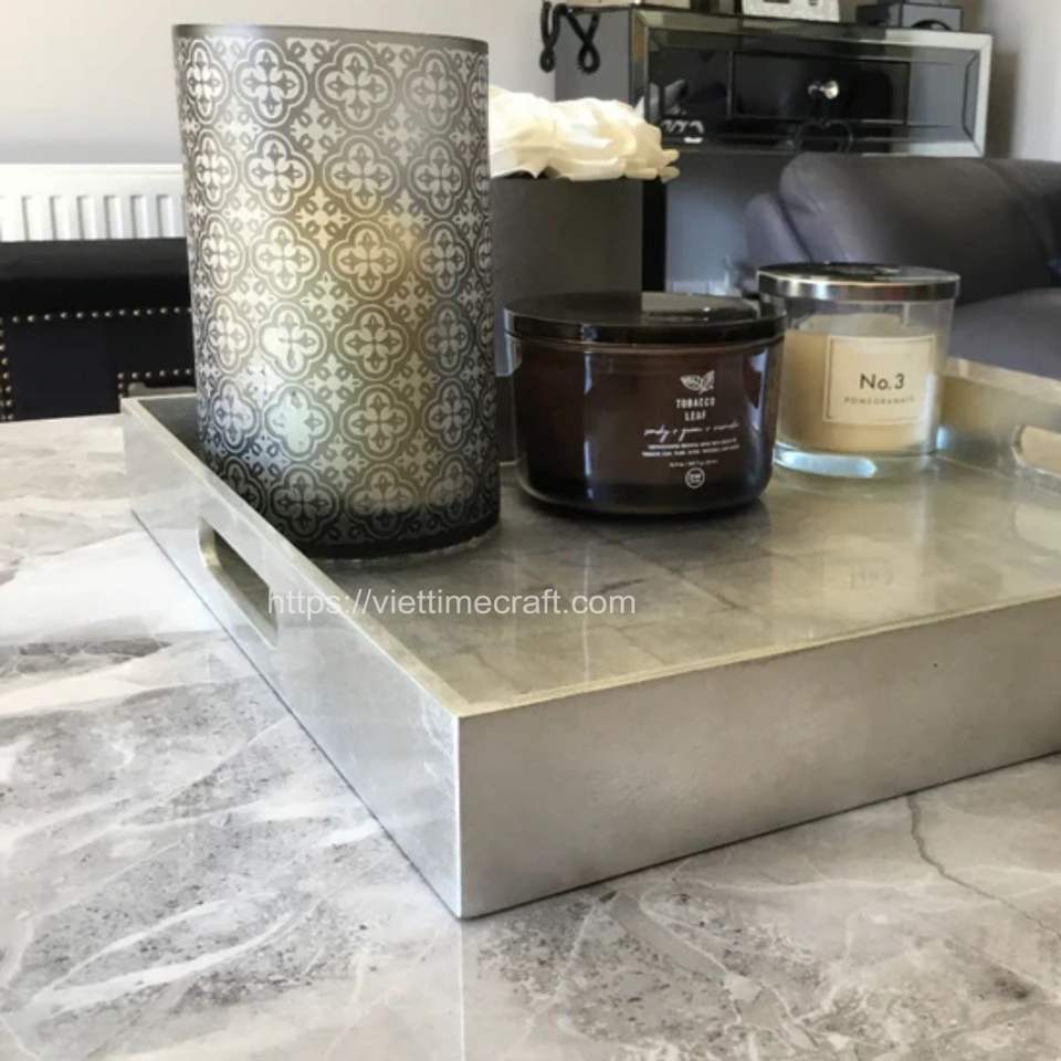 ชุดถาดใส่แลคเกอร์สีโรสโกลด์พร้อมที่จับถาดเสิร์ฟอเนกประสงค์สำหรับโต๊ะอาหารตกแต่งโต๊ะในบ้าน