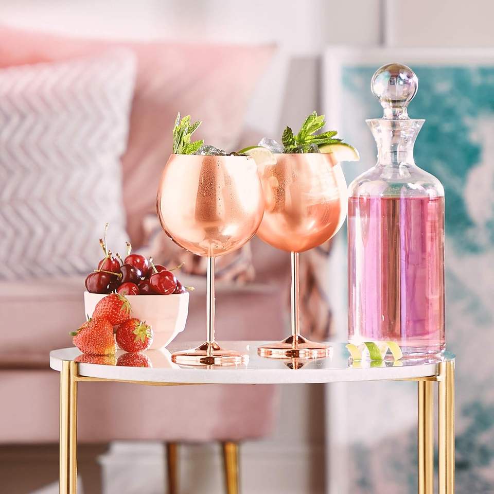 Rose Gold Luxury Champagne Glasses Stainless Steel Large Capacity Drum Shaped Drop Resistant Goblet Red Wine Glass