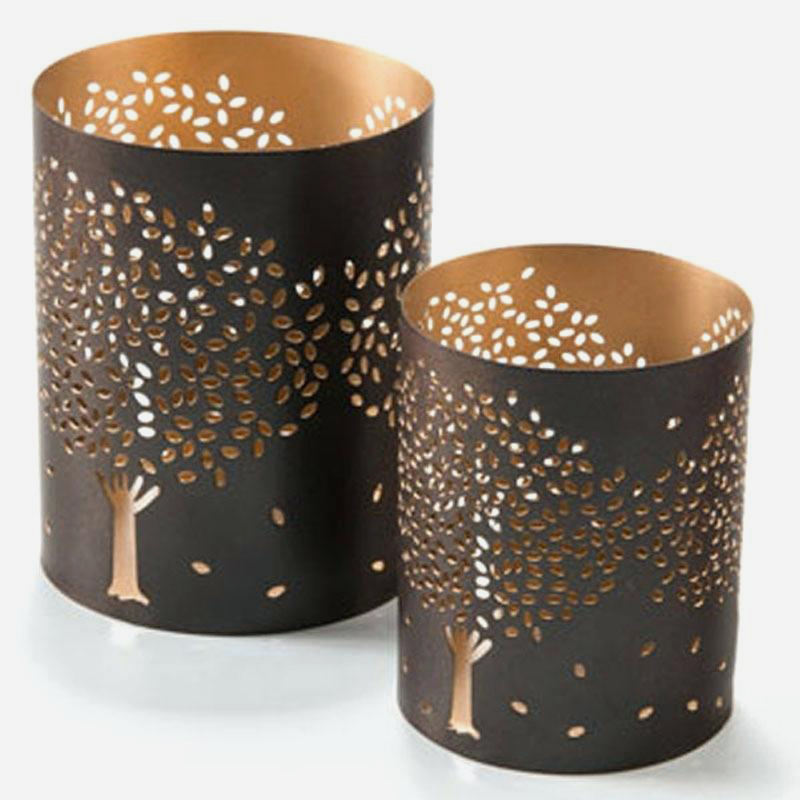 ชุดเชิงเทียนโลหะสีโรสโกลด์แบบตัดลาย รูปทรงเฮอร์ริเคน จำนวน 2 ชิ้น
