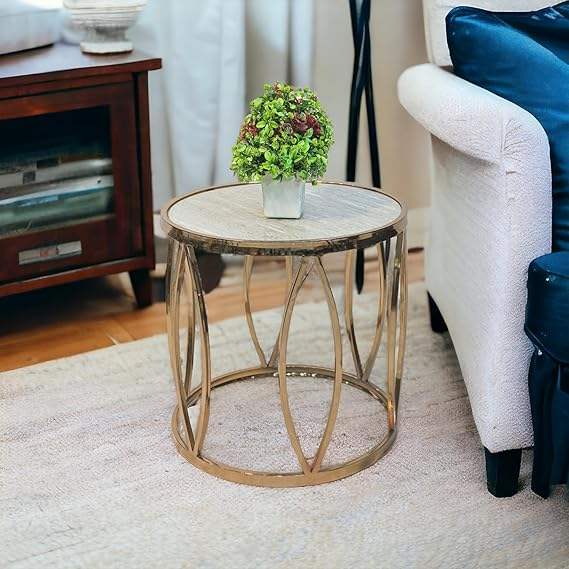 โต๊ะข้างเตียงทำจากโลหะสีโรสโกลด์พร้อมท็อปหินอ่อนหรูหราโต๊ะข้างเตียงสำหรับห้องนอนและโต๊ะข้างเก๋ไก๋สำหรับตกแต่งห้องนั่งเล่น