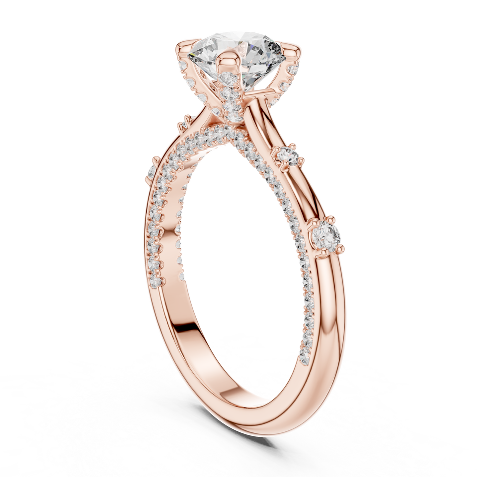 แหวนหมั้นเพชรโมอิสซาไนต์สีโรสโกลด์สำหรับผู้หญิง ประดับด้วยพลอยเม็ดเล็ก 4 กรงเล็บ แหวนแต่งงานแบบโซลิแตร์ ของขวัญวันครบรอบ ทำจากโลหะผสม ได้รับการรับรองจาก IGI