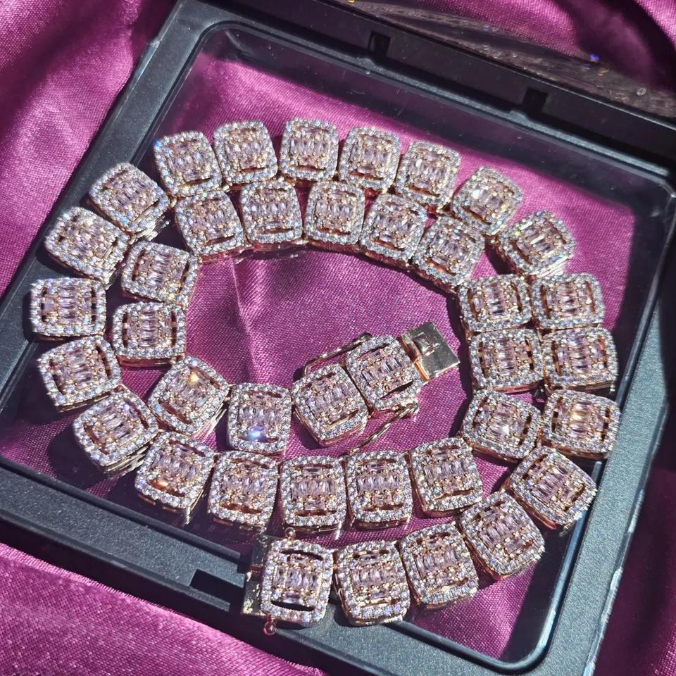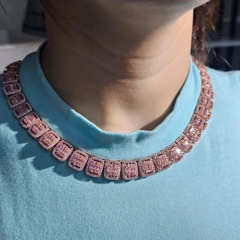 สร้อยคอเงินแท้ 925 ประดับมอสซาไนต์ทรงบาแกตต์และทรงกลม ดีไซน์หรูหราสำหรับทุกเพศ