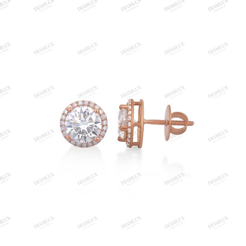 ต่างหูแบบติดหูทรงกลมชุบทองคำสีกุหลาบ ประดับเพชรเม็ดเดี่ยว ดีไซน์คลาสสิกสำหรับผู้หญิง ราคาสุดคุ้ม