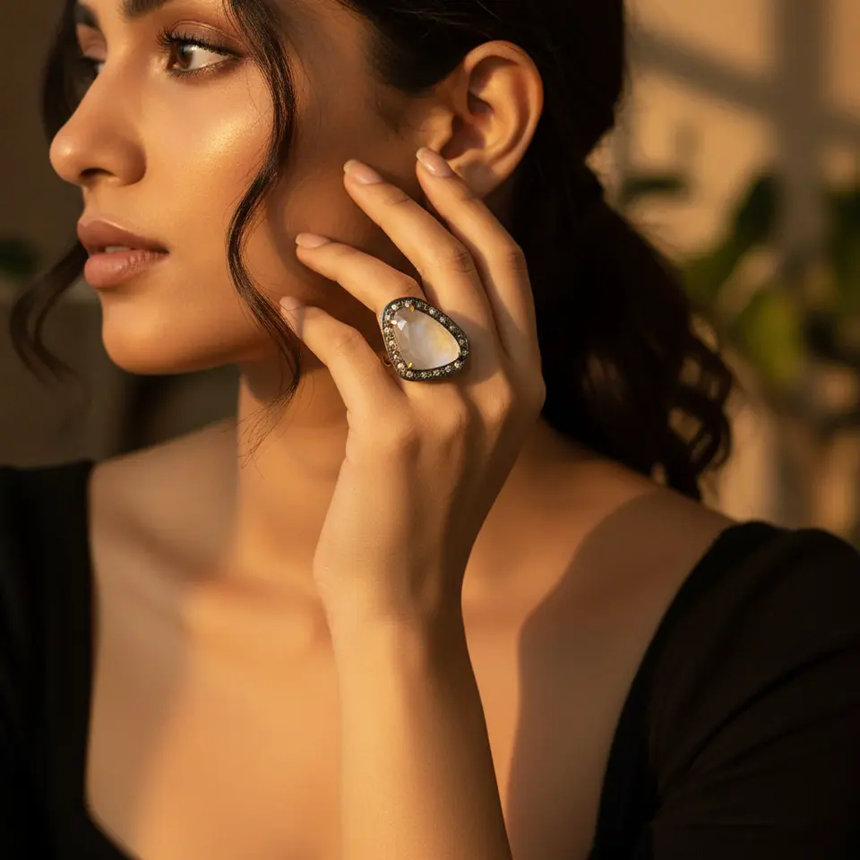 แหวนแฟชั่นโรแมนติกสำหรับผู้หญิง ชุบทองคำสีโรสโกลด์ ประดับเพชรและพลอย ดีไซน์ทันสมัย ตัวเรือนแบบกรงเล็บ ตกแต่งด้วยทองคำ