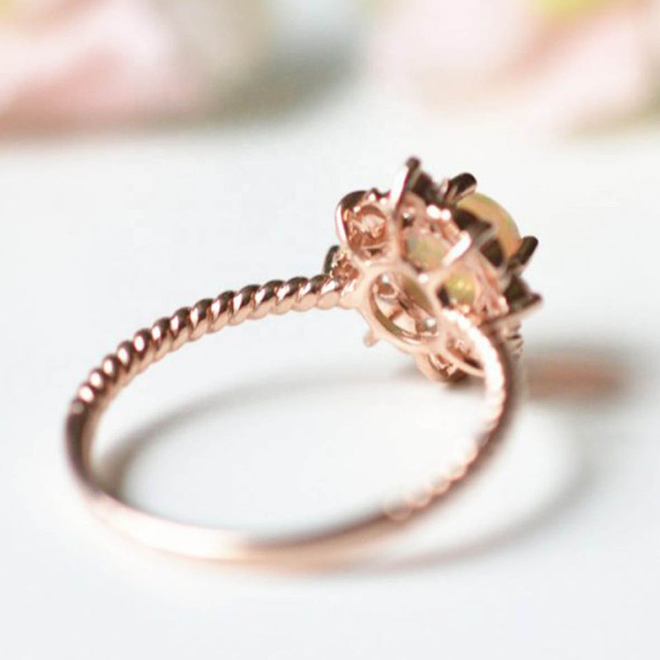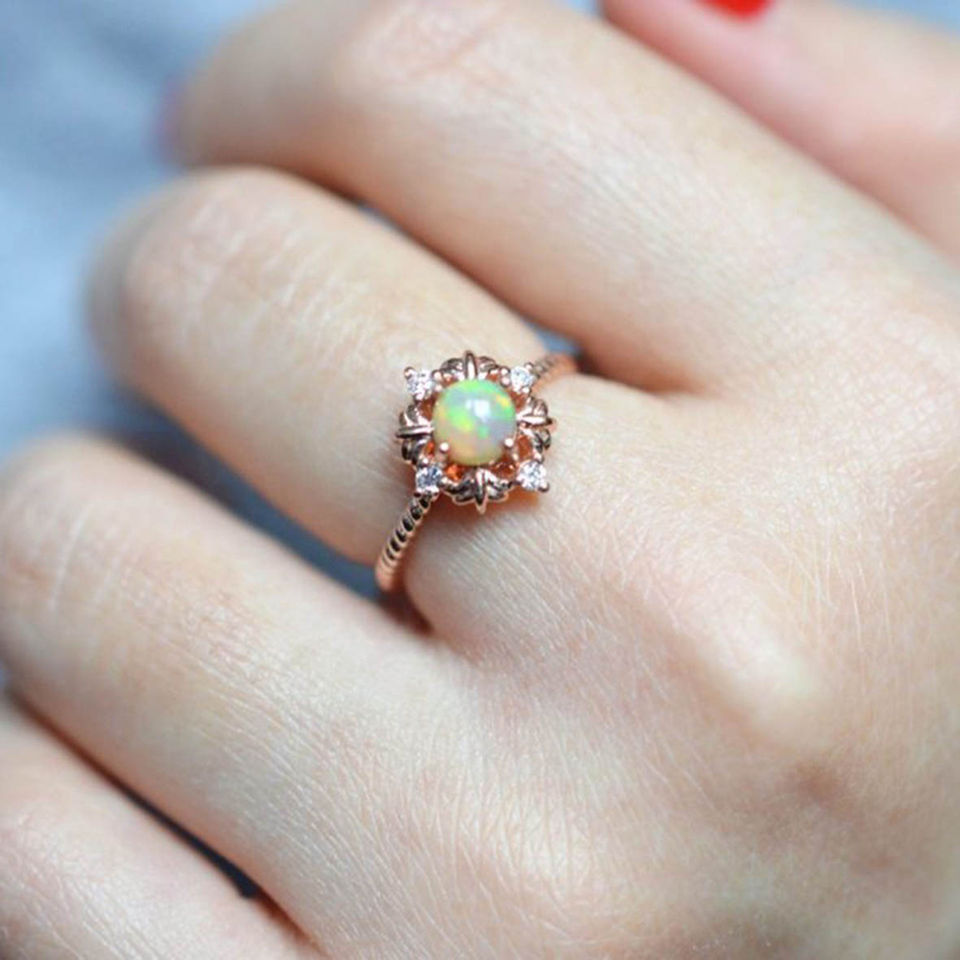 แหวนเงินแท้ 925 ชุบทองชมพู ประดับโอปอลเอธิโอเปียทรงกลมธรรมชาติ 5 มม. ลายดอกไม้